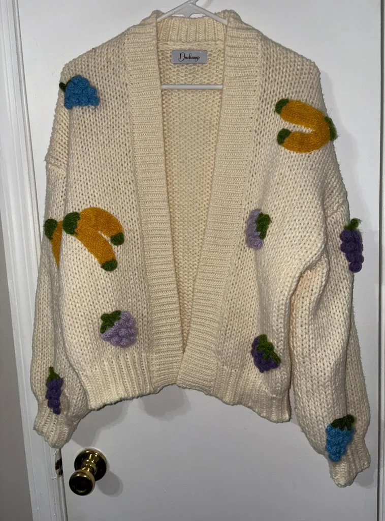 Anthropologie Duchamp Cream 3D Embroidery Knit Fruit Chucky Cardigan One size Purple - $180 - From Adriana