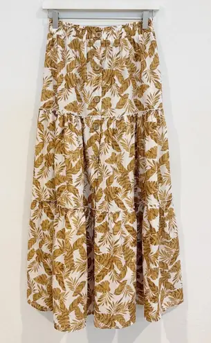 Excellent Preowned Condition Elastic waistband Button front Tiered skirt Leaf print Slit at bottom... Show more