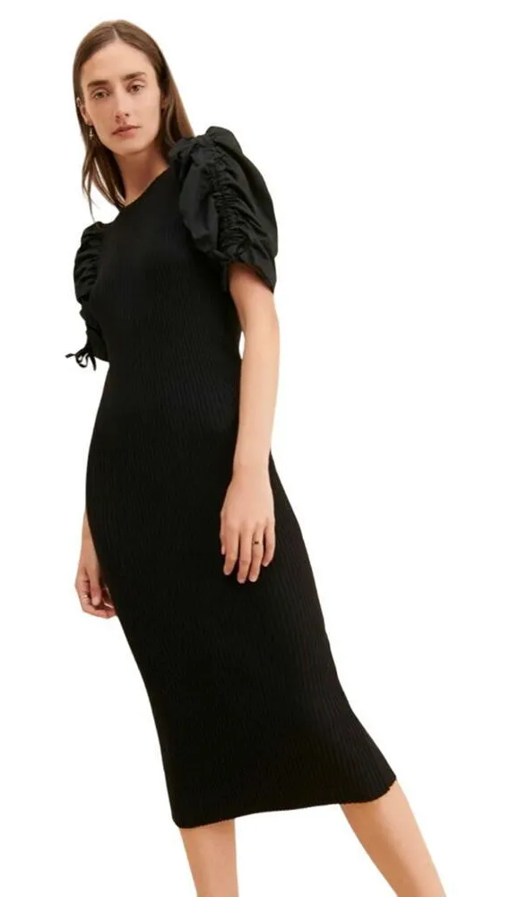 Sexy, Gorgeous Dress NWT En Saison Fitted Maxime Midi Dress , Open Back, Stretchy Puff Sleeves Bl... Show more