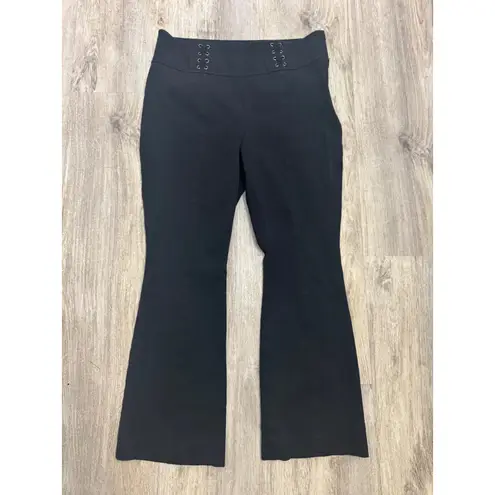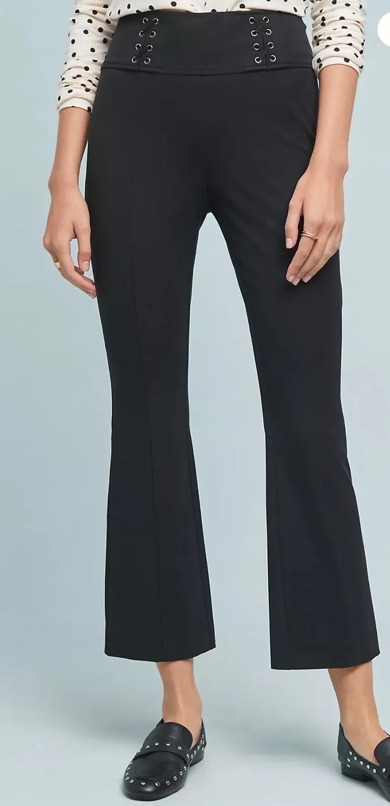 Anthropologie Essential Crop Flare Pants in black. These high-rise pants feature a faux lace-up det... Show more