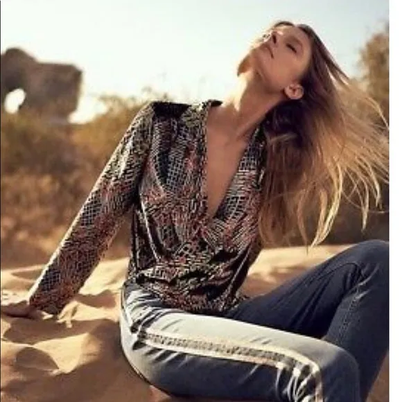 ANTHROPOLOGIE ett:twa VELVET FLORAL PRINT WRAP BLAZER Blouse Sz2. Excellent condition