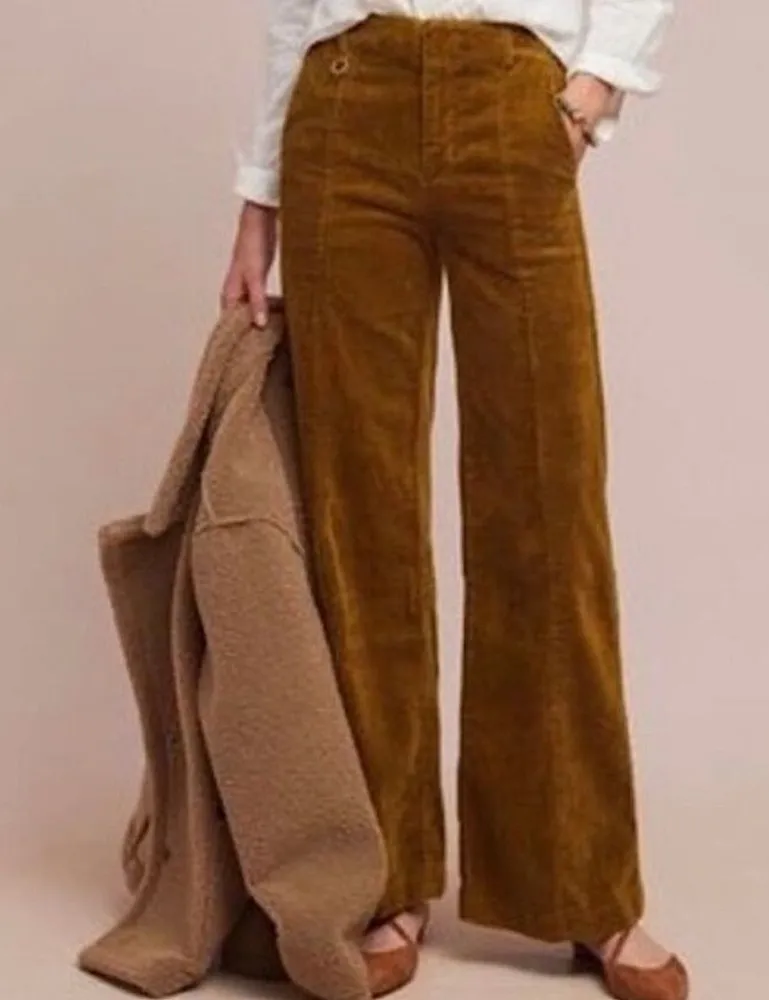 Anthropologie Ett:twa Wide Leg Corduroy Trouser Pant 70s Retro Vintage 32. 70s inspired golden olive... Show more