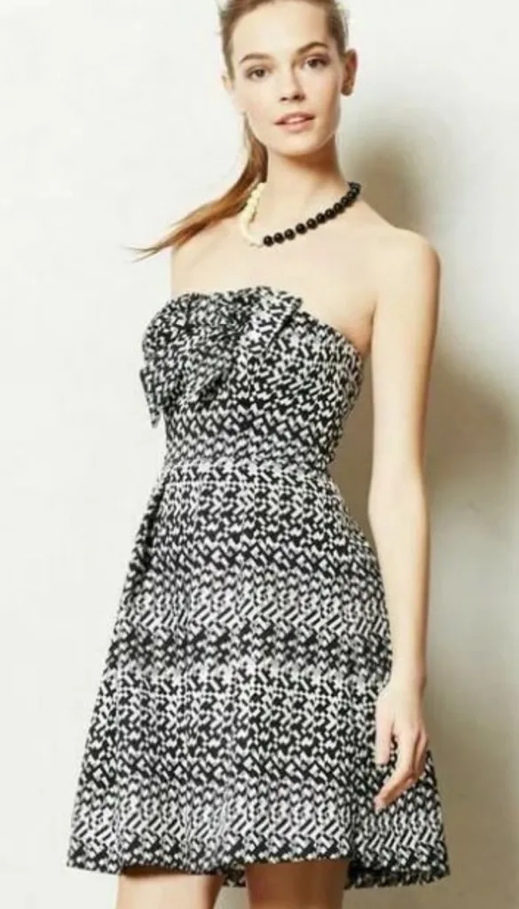 Beautiful strapless dress with big bow in front by Eva Franco in sz 10. It’s really shiny, the pict... Show more