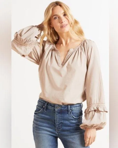Anthropologie Evereve Ellie Poplin Blouse Beige Tan Size XS - $18 - From Tiffany