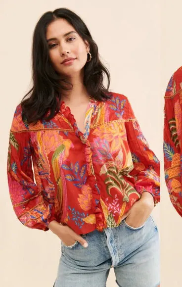 Topped with a vibrant floral pattern, this fun and feminine Farm Rio blouse is crafted in airy cotto... Show more