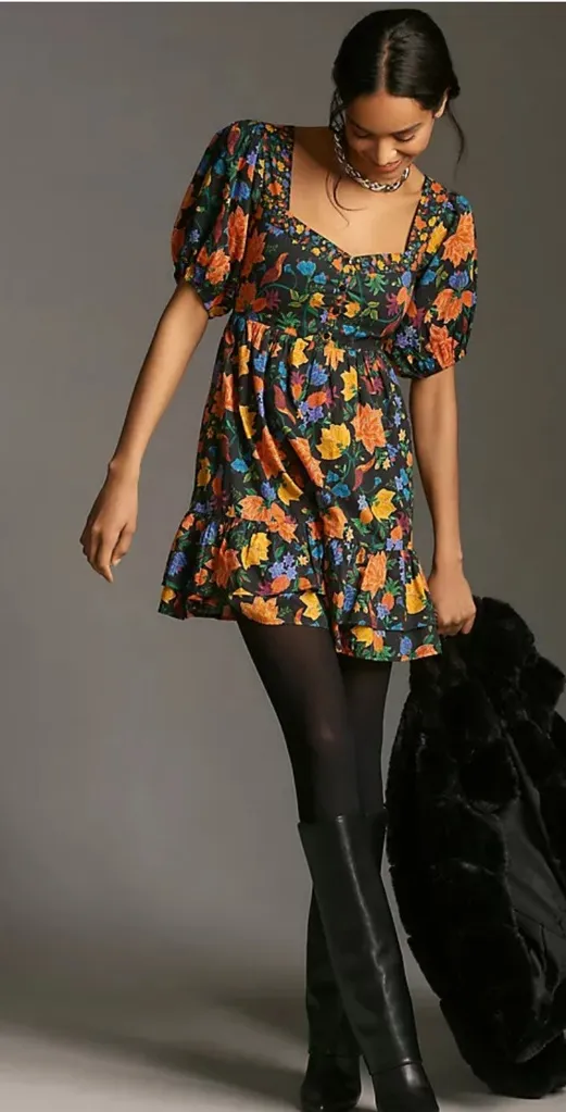 Anthropologie Farm Rio Short-Sleeve Sweetheart Floral Mini Dress Black - $105 - From Ligia