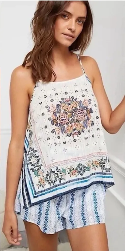 Anthropologie Floral Cotton‎ Sleeveless Top size xs Blue - $27 - From Melissa