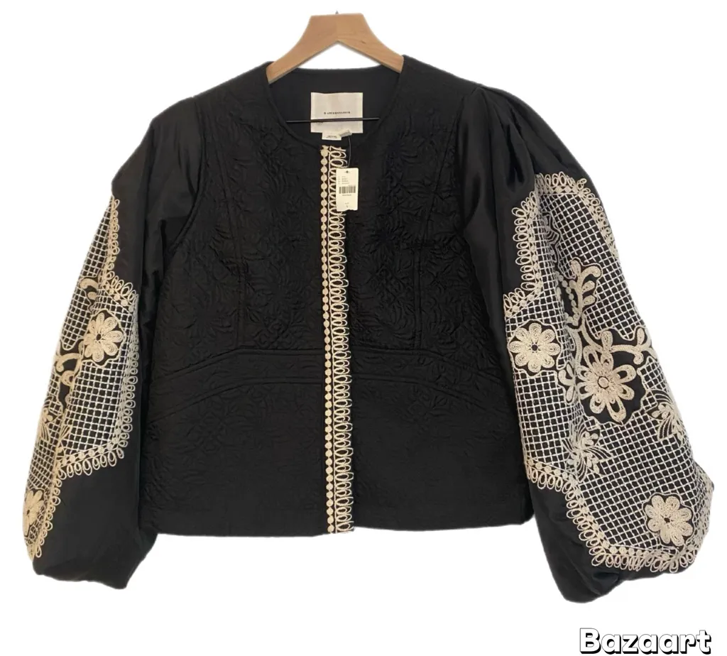 Elegant black jacket with intricate embroidery. Perfect for adding a touch of sophistication to any... Show more