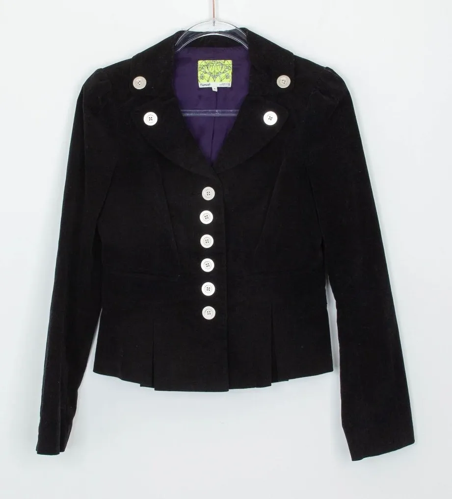 Anthropologie Floreat Edith Velvet Military Blazer Jacket Size 4 Black Goth Y2K Approximately 16" p... Show more