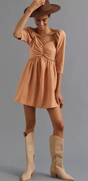 Forever That Girl x Anthropologie Babydoll Mini Dress in Dusty Rose. Color is a mix between pink cla... Show more