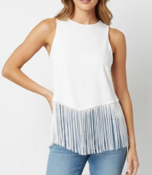 NWOT- NEW WITHOUT TAG!. Anthropologie White Fringe Hem Flirty Sleeveless Tank Top This Anthropologi... Show more