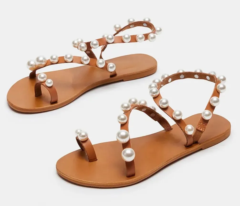 Giant pearl million dollar wrap around sandals wedding size 39 Tan - $85 - From E
