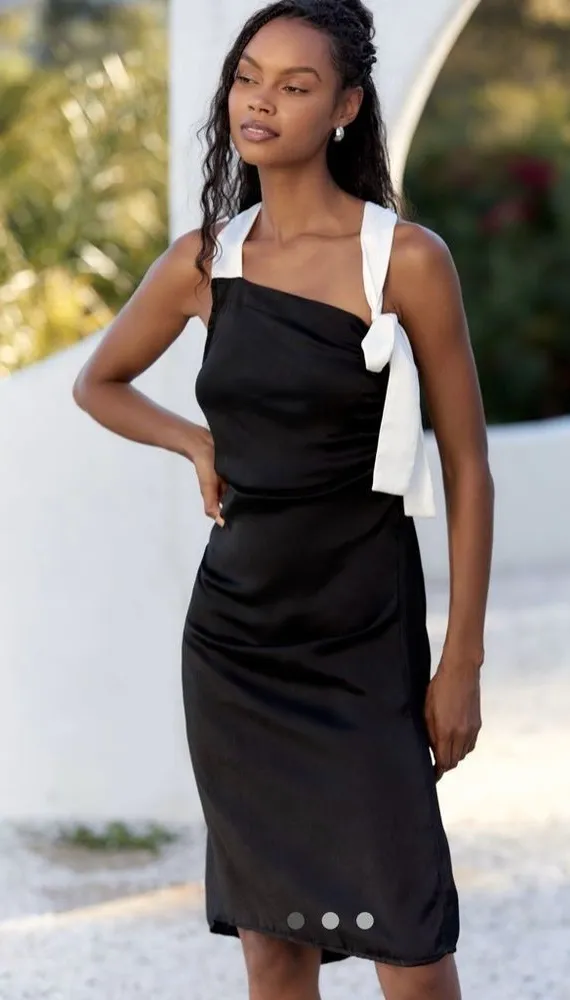 Anthropologie Celadine Halter Midi Dress Black and Cream White Sleeveless Beach Dress Medium NWT. Po... Show more