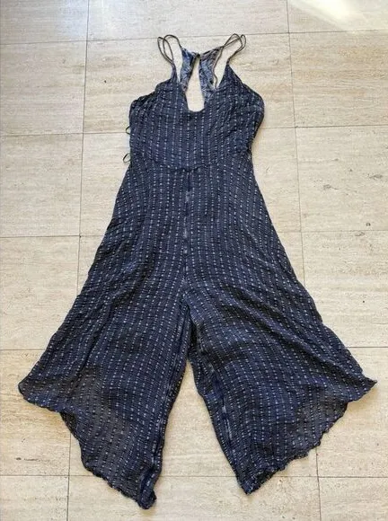 Anthropologie HD‎ in Paris Harbor CropWide Leg Jumpsuit Cupro Navy Size 12 Blue - $45 - From Yannie