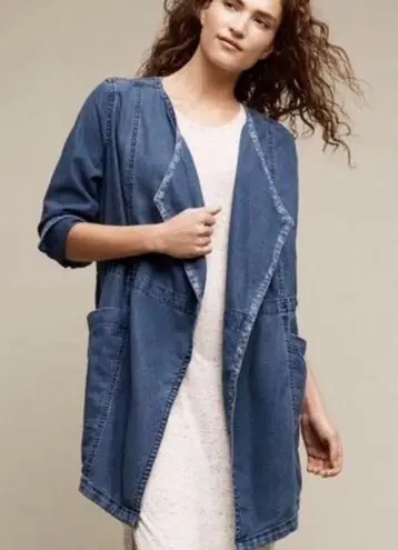 Linen Blend Chambray Jacket Denim Jean like Long Sleeve Open Front Large pockets Cinched waist with... Show more