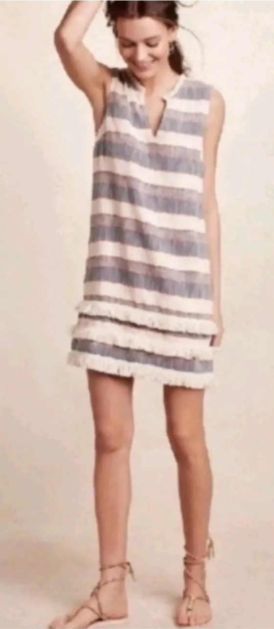 Anthropologie Holding Horses Tassel Fringe Cream Blue Red striped dress Sz 12P. Condition is Pre-own... Show more