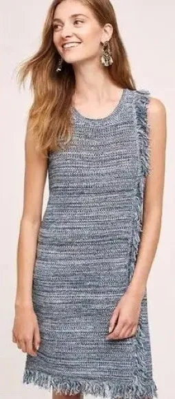 Anthropologie Holding Horses Tweed Fringed Sweater Dress Sleeveless Blue XS - $24 - From Megan