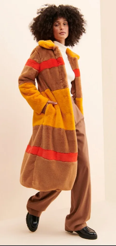 Anthropologie Hutch Colorblock Stripe Faux Fur Coat Size XS - $175 - From Liz