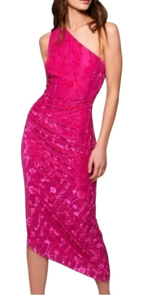 Anthropologie Hutch One Shoulder Velvet Ruched Midi Dress Pink Size L or 10 Excellent pre owned cond... Show more