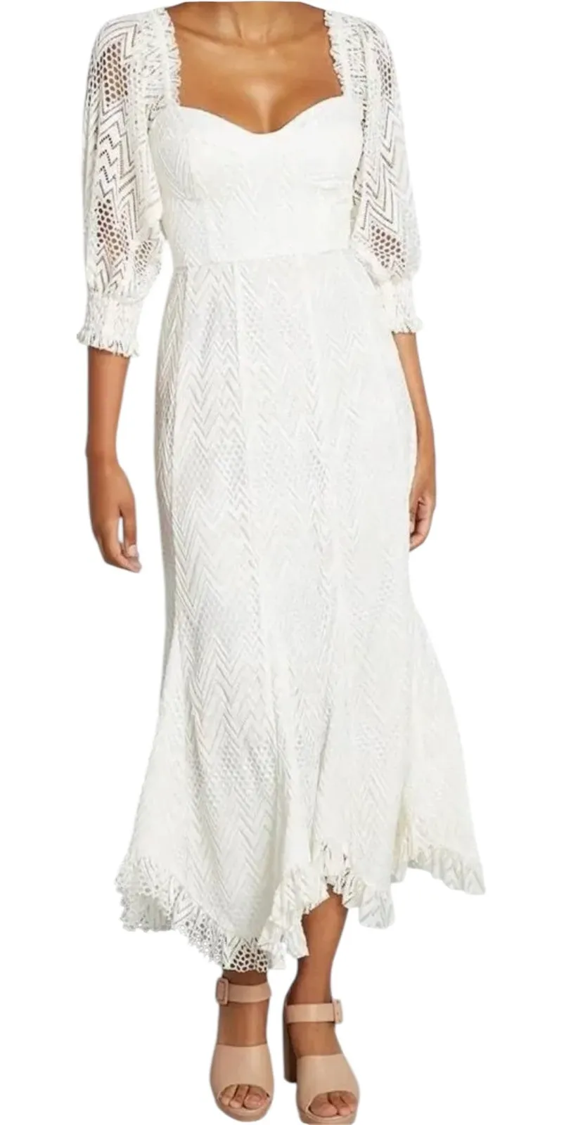 vintage-inspired white midi dress from Hutch could only make you shine all the brighter. Crafted fro... Show more