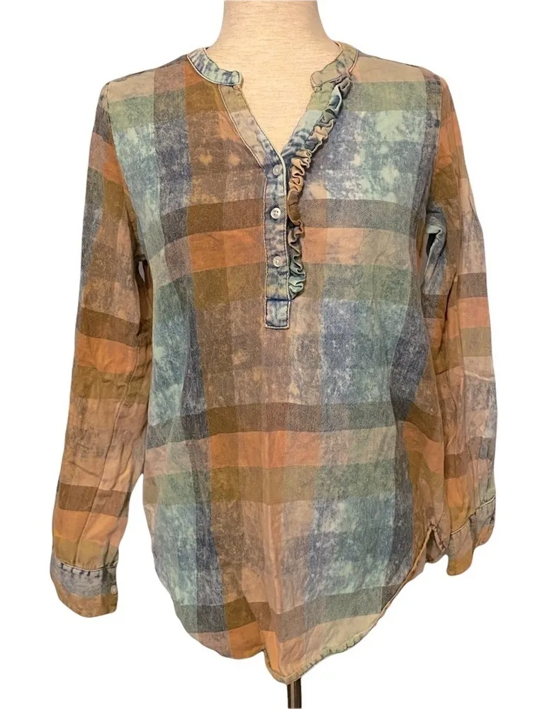 Anthropologie Isabella Sinclair Plaid Ruffle Henley Top XS. Great condition see photos for details.... Show more