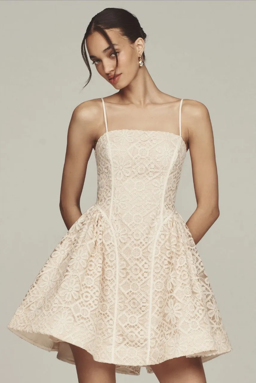 Romantic and feminine, this Anthropologie Lace Basque Waist Mini Dress is a beautiful choice for spe... Show more