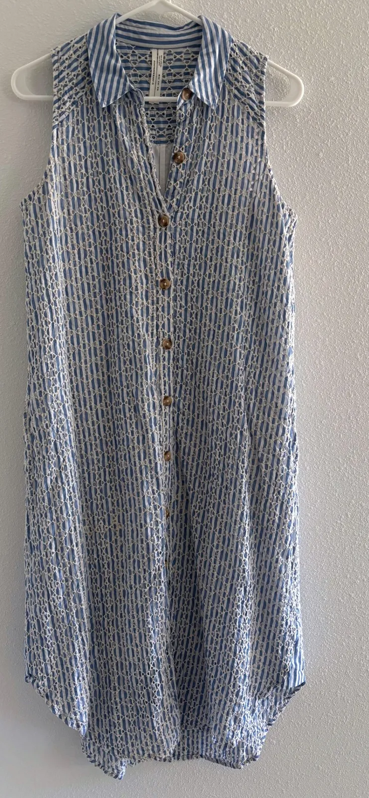 - Brand: by Anthropologie - Size: Women's 4 - Color: Blue, White - Details: Collared, Midi Length, Button Down - Condition: Excellent Pre-Owned - Preppy, Beachy, Coastal, Classic