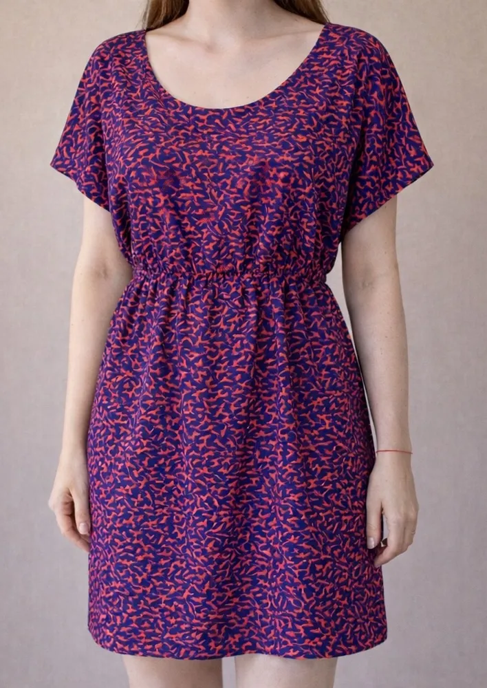 Anthropologie Kiwi Purple Dinosaur Bird Print Dress | Short Sleeve Fit & Flare | Size M ⸻ Descript... Show more