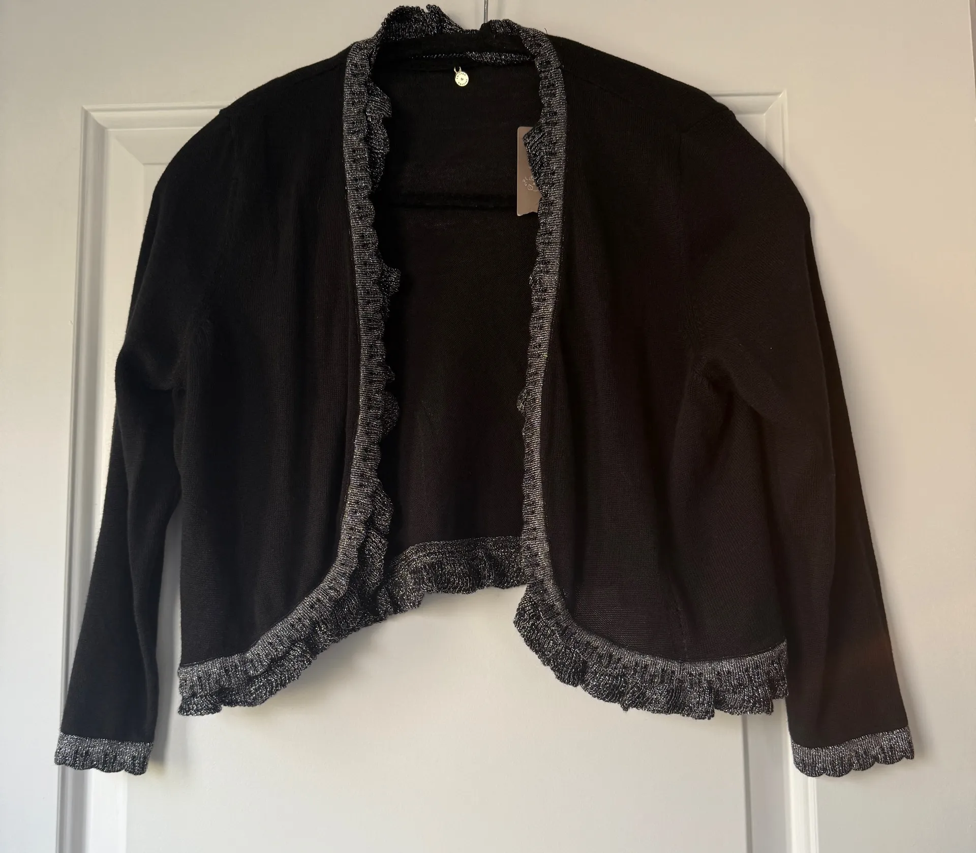 Anthropologie Knitted & Knotted Black Silver Open Front Cardigan Shrug Women's S Brand: Anthropolog... Show more