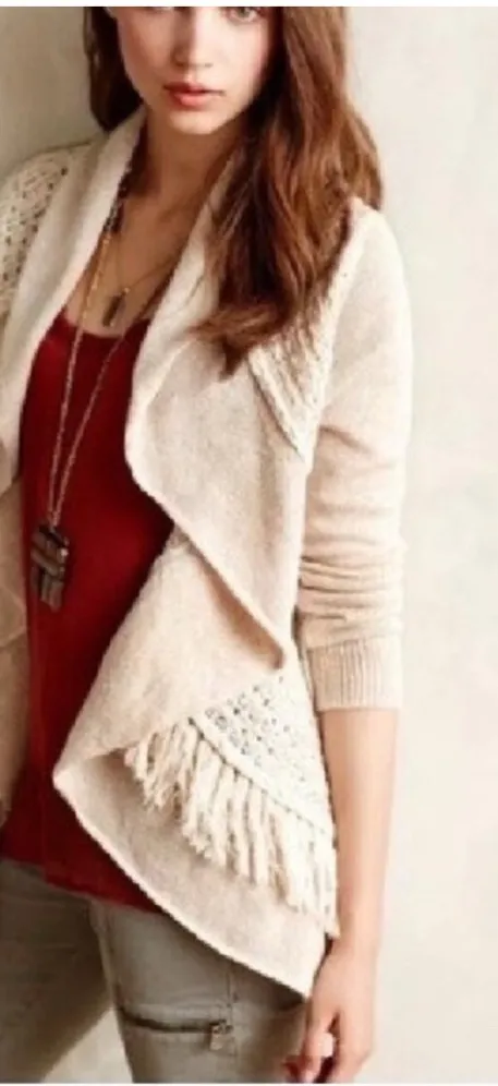 Knitted & Knotted Anthropologie Crochet crocheted knit Creamy pink beige nude Cable knit chunky Size: Small Gently worn Excellent condition Materials: cotton, acrylic, wool, nylon, viscose Fringe Bohemian boho