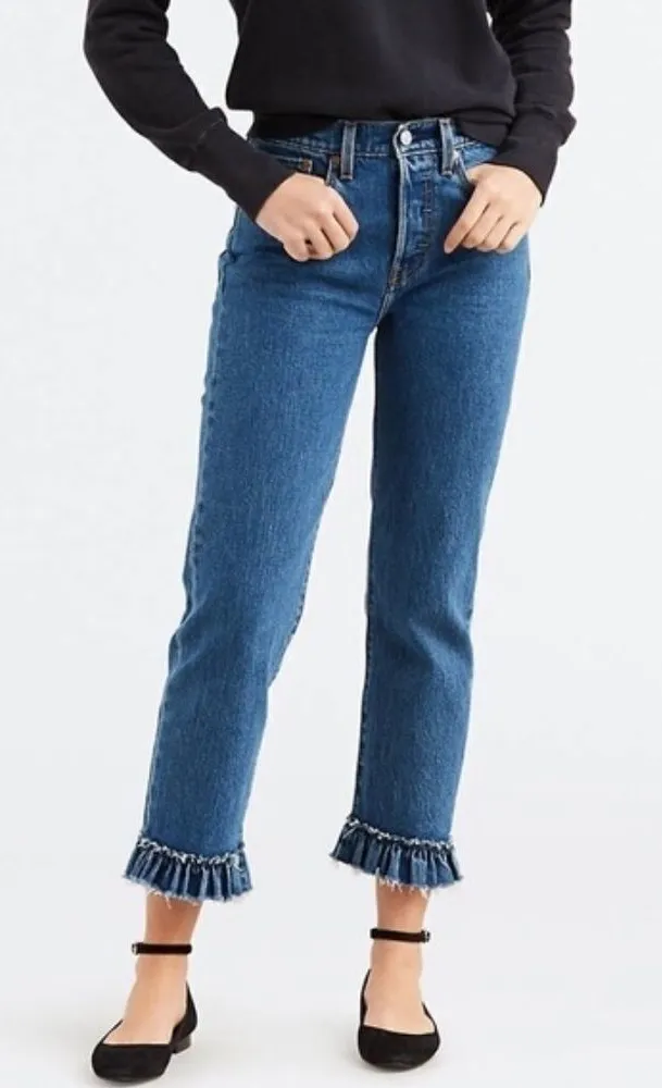 Sold at Anthropologie Levi’s Premium Wedgie Straight Ruffle my Feathers Jeans with pleated / ruffled... Show more