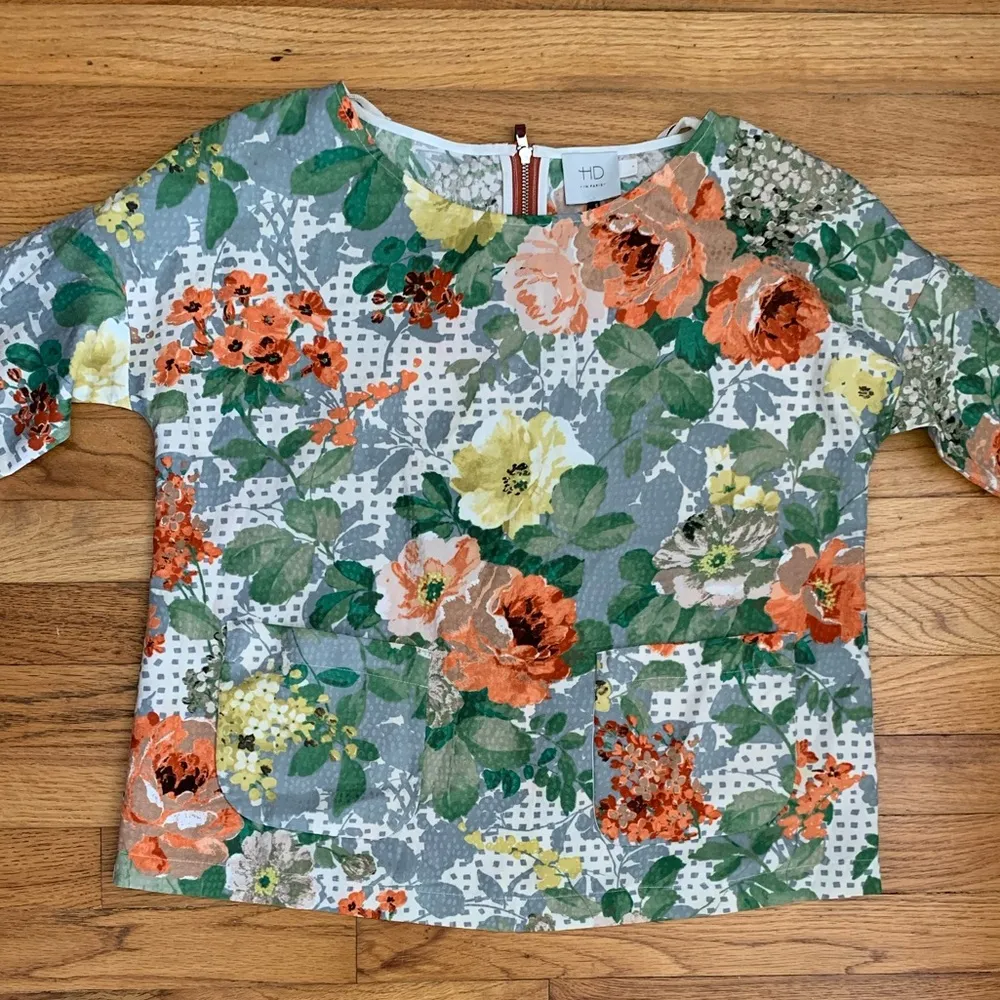 Adorable floral blouse with patch pockets on front and partial back zip. Absolutely love this too wi... Show more