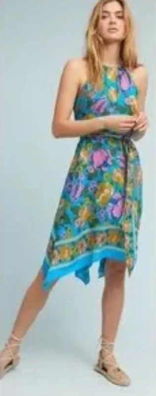 c9102625 31 -43“ long 17-19” pit to pit 36” waist Embrace vibrant style with this floral halter dr... Show more