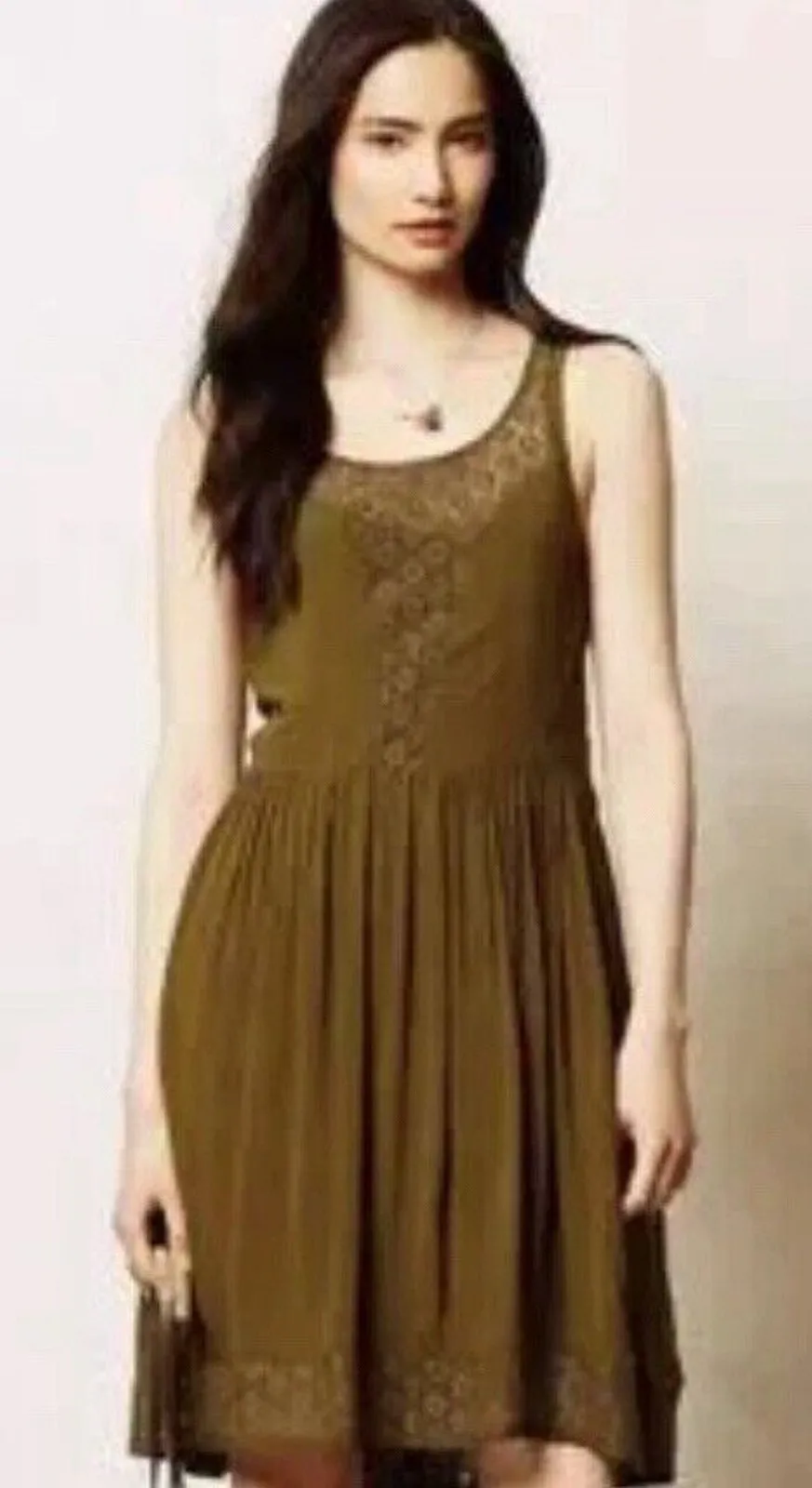 Anthropologie Lilka Dress Olive Green Rayon & Lace Sleeveless Open Back Sz S - $30 - From Luciana