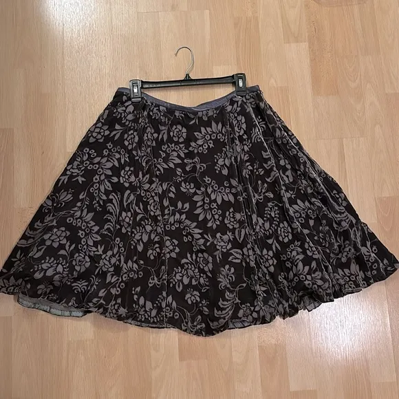 Elegant flowing burnout velvet floral skirt in sugarplum color. Concealed side zipper. Fully lined w... Show more