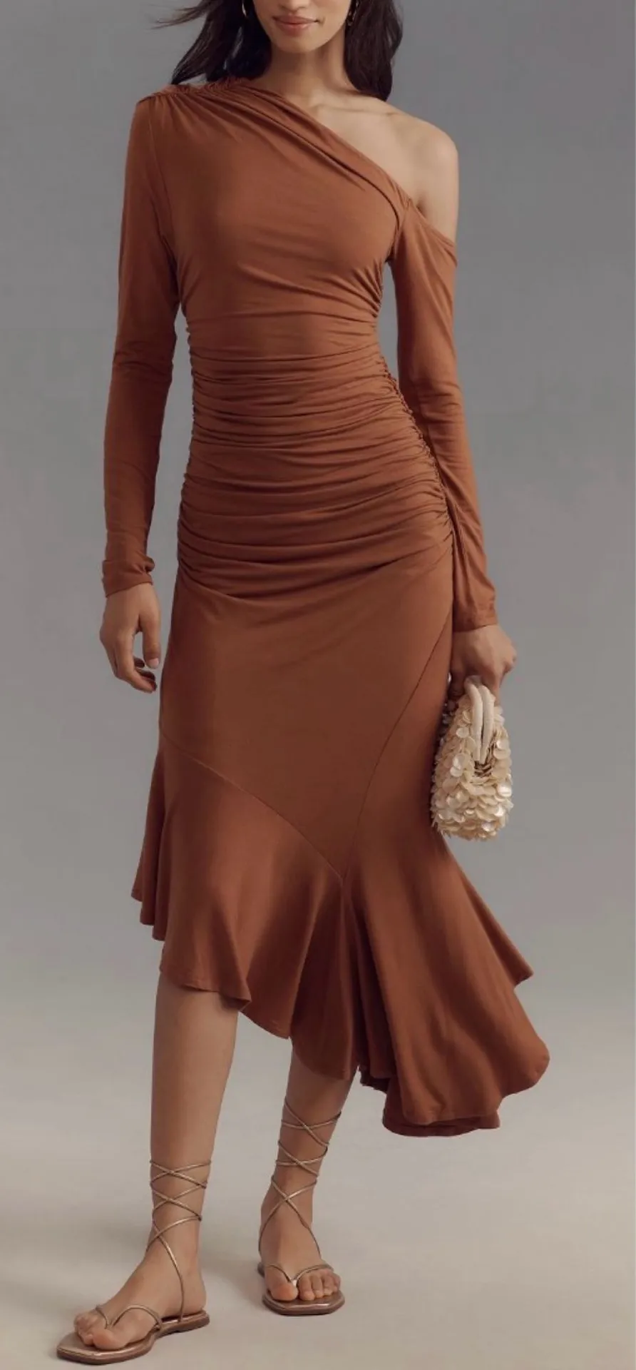So feminine and so flattering, this beautiful honey brown midi dress is perfect for so many occasion... Show more