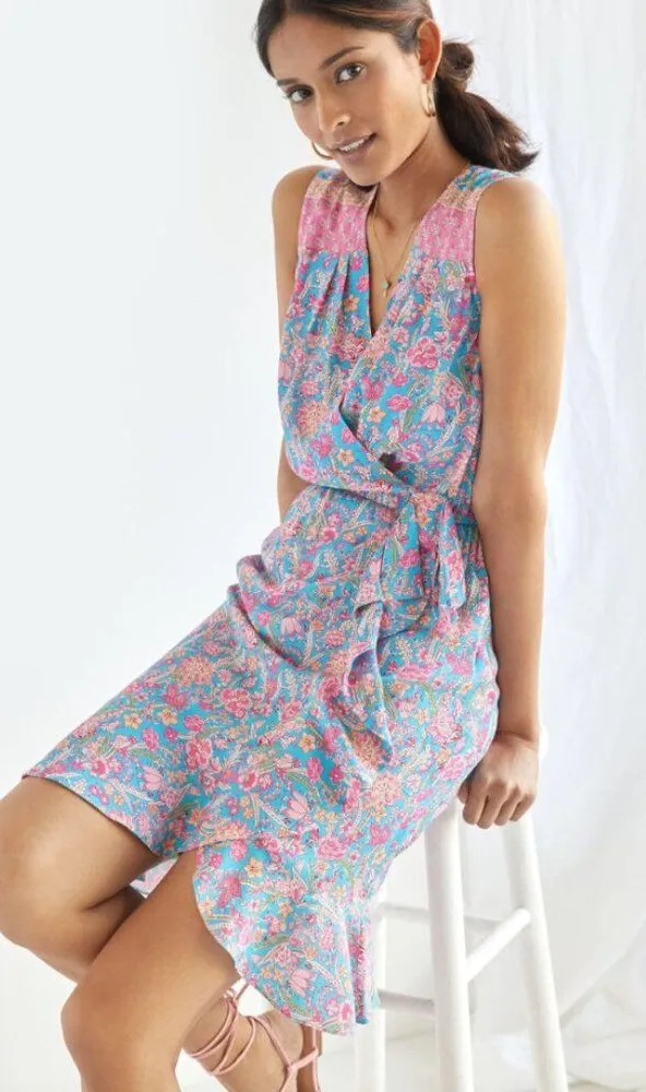 Plenty by Tracy Reese Botanical Printed Wrap Mini Dress in Pink/Blue Floral Combo. Blue with floral... Show more