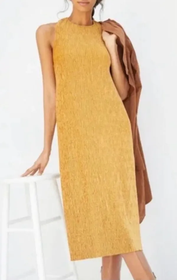 Anthropologie Maeve Textured Midi Dress Color: Golden Wheat / Mustard Yellow Size: XL (see measurem... Show more