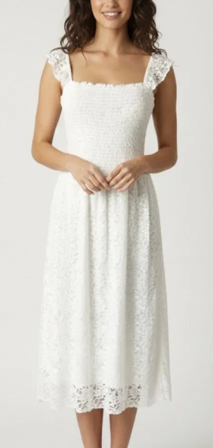 Anthropologie Maeve Anastasi Smocked Mini Dress in White Lace. Excellent used condition with no flaw... Show more