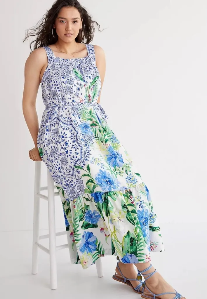 Anthropologie Maeve Bouquet Flounced Maxi Dress XS Blue - $70 - From Kaley
