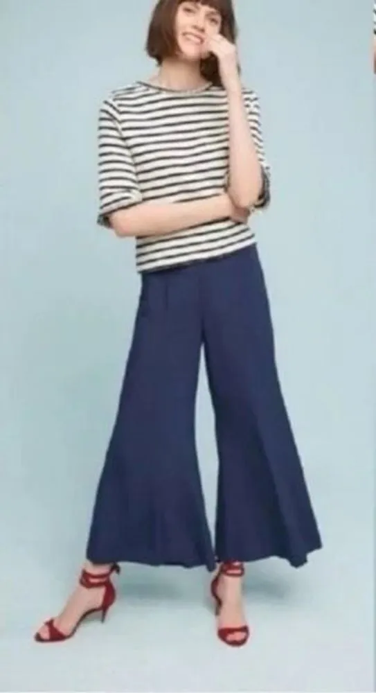 ✨Anthropologie by Maeve Canna Culotte Wide Leg Crop Pants Dark Blue Rayon Side Zipper Excelle... Show more