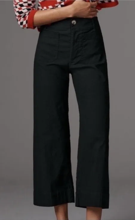 Anthropologie Maeve Colette Cropped Wide Leg Dress Pants Linen Blend Women's Size 25 Black High Rise... Show more
