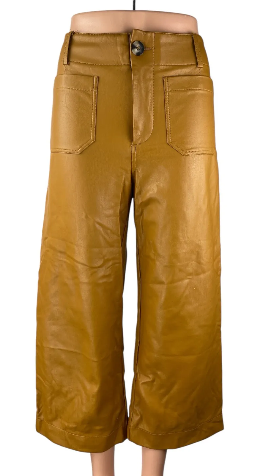 Anthropologie Maeve Colette Faux Vegan Leather Mustard High Rise Wide Leg Trousers Pants Size 26 Si... Show more
