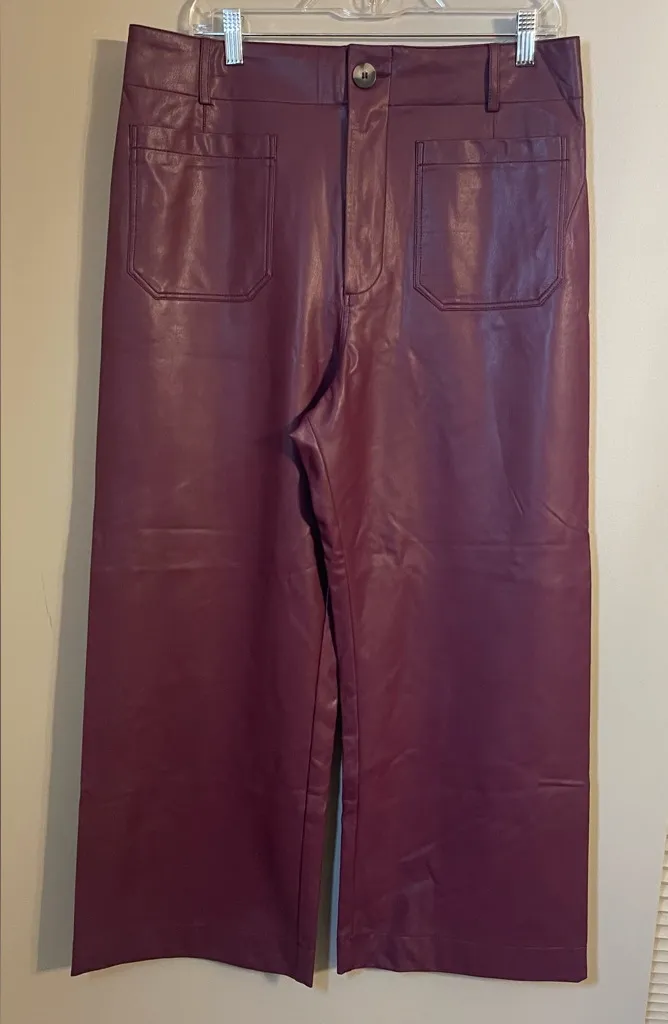 Chic plum leather pants with a sleek design. Features a comfortable fit and stylish look. Approximat... Show more