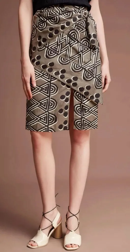 . Anthropologie Maeve Edessa Linen Brown Tribal Print Sarong Wrap Skirt Fully lined Single patch... Show more