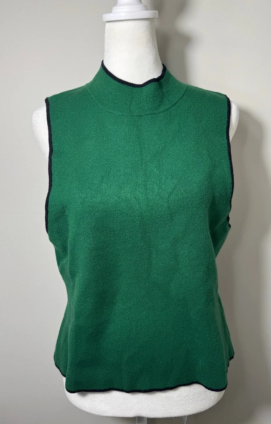 In excellent condition Anthropologie Maeve Maria Mock Neck Sweater Tank. Size medium. Beautiful deep green color with black trim. Measurements below. pit to pit: 19" total length: 21"