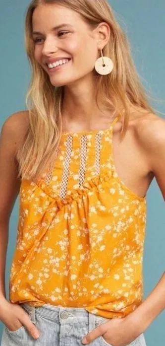 Brand: Maeve Anthropologie Color: Yellow -darker more on the mustard side Size: M Material: Cotton... Show more