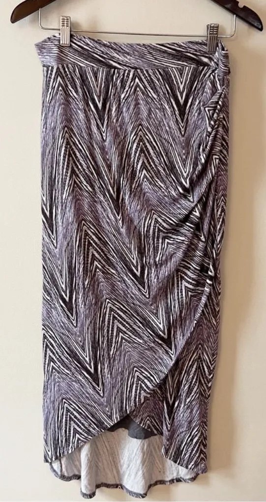 Excellent used condition. Purple, gray, black and white stripes. Stretch elastic waist. Maxi length... Show more