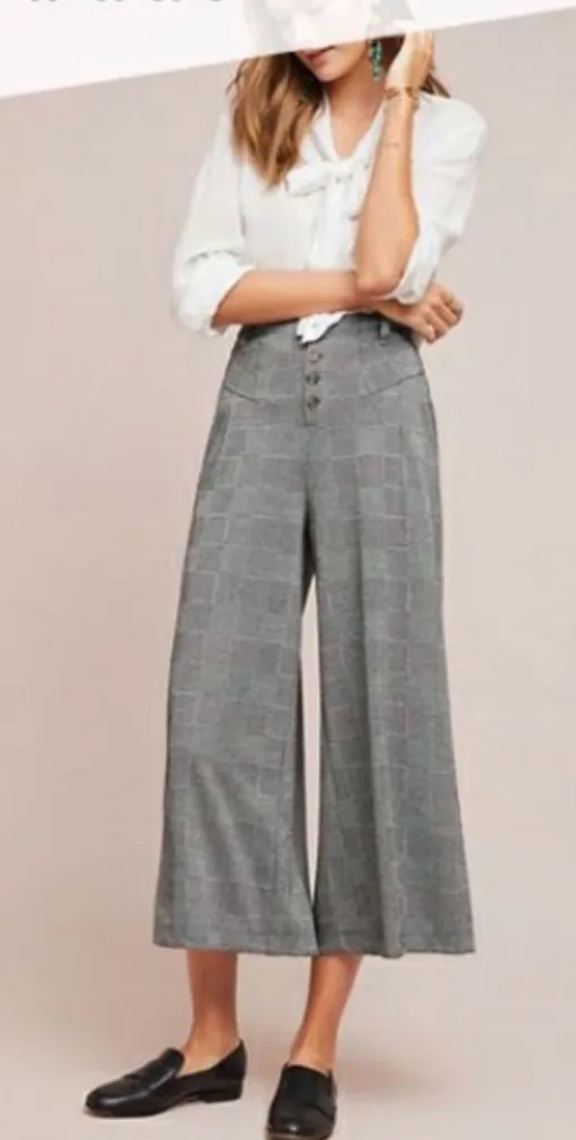 Anthropologie Maeve Plaid Womens Wide Legged Cropped Black Grey Plaid Pants XS Gray - $39 - From Jasmyn