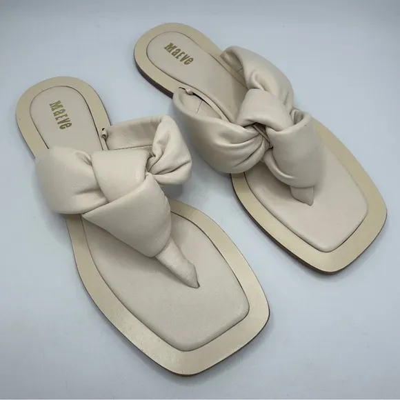 Anthropologie-Maeve Puffy Knotted Sandals Beige Genuine Leather Size: 7M Square toe Large puffy Knot... Show more